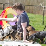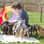 So stellen wir sicher, dass unser Nachwuchs schon in den ersten Lebenswochen die wichtigsten Lektionen des sozialen Lernens in einer Hundegruppe mitbekommt und auch den „Disziplinarunterricht“ durch ihre Mutter & die anderen Gruppenmitglieder erfahren kann. Gerade dieser Teil des sozialen Lernens ist unheimlich wichtig für jedes einzelne Tier, die spätere soziale Kompetenz und die Bildung eines stabilen Temperaments betreffend.