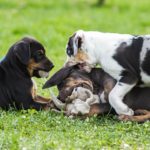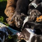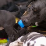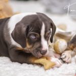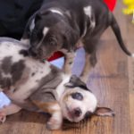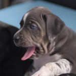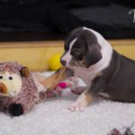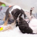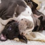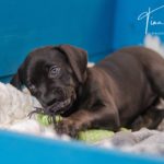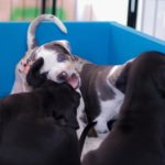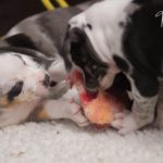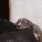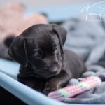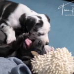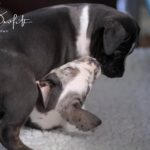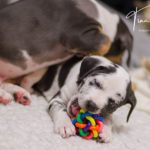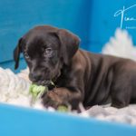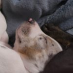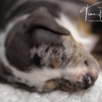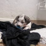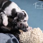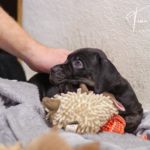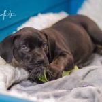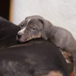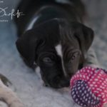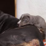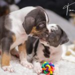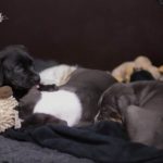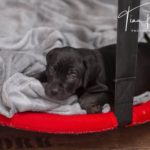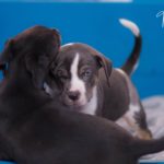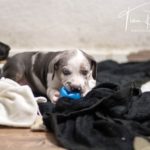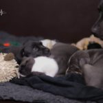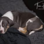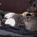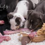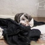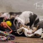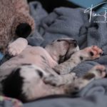 Die Eltern dieser Elf sind Spitfire und Lennox. Die Geburt ging diesmal nicht komplikationslos von statten. Der erstgeborene Welpe „Ruger“ steckte im Becken fest & hat uns gut 15 Minuten Schweiß und Nerven gekostet bis er heil auf die Welt kam. Die anderen 10 kamen dann innerhalb der nächsten 4,5 Stunden auf die Welt, der Rest der Geburt verlief Gott sei Dank dann komplikationslos.