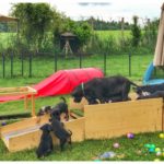 Spitfire nimmt ihre mütterliche Fürsorgepflicht ,wie immer, äußerst ernst und kümmert sich wie eine Glucke um ihre Zwerge – nachdem die Kleinen vier Wochen alt waren, hat unsere Helikoptermutter toleriert, dass unser ganzer Sozialverband dabei half die Welpen großzuziehen.